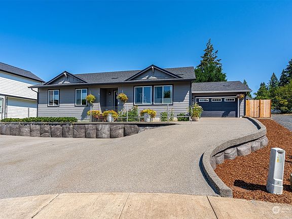 Open concept home in desirable community and neighborhood! Come see this bright, super clean rambler with a large open concept living room, dining room, and kitchen. Kitchen boasts upgraded soft close cabinetry, stainless appliances, pantry, and eating bar. Find additional storage in the conveniently located utility room. Head down the hallway to a full bath and 2 large bedrooms then round the corner to the spacious primary bedroom with roomy walk in closet, and full bath. Fully fenced yard and low deck for entertaining. Exquisite concrete work in front and a nice sized attached garage. In a neighborhood of newer homes and walking distance to community amenities. Just minutes to I-5 and half way between Seattle and Portland.