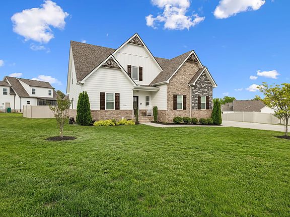 Welcome to this gorgeous 4-year-old home in the desirable Brookside Subdivision! Perfectly situated in a peaceful cul-de-sac, this like-new modern farmhouse-style home offers stunning curb appeal and thoughtful design throughout. Step inside to a bright and welcoming open floor plan accented by beautiful luxury vinyl flooring and a vaulted living room ceiling. A modern electric fireplace adds a cozy, stylish touch to the spacious living area- ideal for both relaxing and entertaining. The immaculate kitchen is a knockout with quartz countertops, a sleek herringbone backsplash, a center island featuring a farmhouse sink, and top-of-the-line appliances including a cooktop, built-in oven, and stylish dishwasher. The sunlit dining room provides ample space for all your special gatherings. The primary suite, conveniently located on the main level, is your personal retreat. Enjoy a luxurious custom walk-in tile shower, double vanity, and a dream custom closet with built-in shelving and drawers. Additional main-level highlights include a mudroom/drop zone with built-in cubbies and hooks, a large walk-in utility room, and a convenient half bath for guests. Upstairs, two spacious bedrooms share a full bath, while a versatile bonus room is perfect for a media room, playroom, home office, or guest space. Out back, your private outdoor oasis awaits! Enjoy the large, fenced yard with low-maintenance vinyl fencing, a covered deck for shade, and a stone fire pit- perfect for summer nights and cozy s’mores under the stars. The storage shed remains, providing additional space for your tools and toys. This home has been lovingly maintained and is truly move-in ready. Ideally located near shopping, dining, medical facilities, and just 25 minutes from BNA, you get both comfort and convenience. Don’t miss your chance to call this exceptional home yours- schedule your private showing today!
