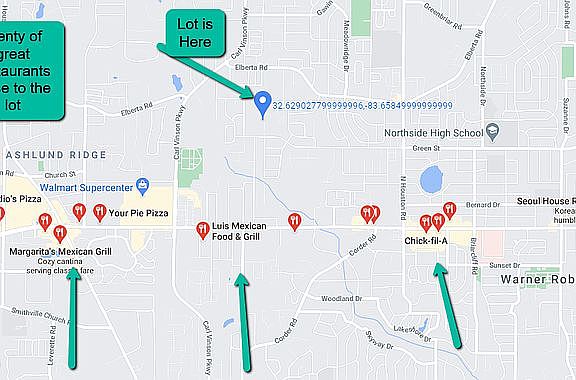 Ready to live in the Dream Town of Warner Robins, GA, designated "Official Best Family Fun Destination in Georgia for 2019". This 3 acre lot is located on Flournoy Drive off of Green Street. GPS coordinates and Google maps link to help you find the lot. GPS coordinates 32.629013, -83.658485 Google Maps link http://bitly.ws/b9fC. Zoned R1 for a new built home, double wide mobile, manufactured and modular home. Warner Robins is 90 minutes south of Atlanta. This great city has a 75 year history of trains, aviation and recognizing local heroes. Visit Rigby's Entertainment Museum for more history fun. Enjoy Golfing, Farmer's Markets, Parks and Lakes. Take a look at the lot today. This lot will sell quickly. Contact info@streetwiselots.com to see lot or call with questions