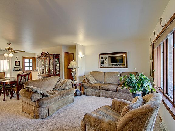 Open Concept custom built ranch with 3 bedrooms, 1 full and 2 half baths on a beautiful street and wonderful neighborhood! The kitchen boasts an island and is open to the dining room and great room making it a fantastic layout for families and for entertaining. The dining room also offers sliding doors leading out to the wonderful deck and serene backyard with lots of trees and a park like setting. Fully finished lower level w/a half bath and a stairway to the garage. Spacious 2.5 car garage and unfinished areas in lower level for workshop/storage. Easy access to Hwy 57.
