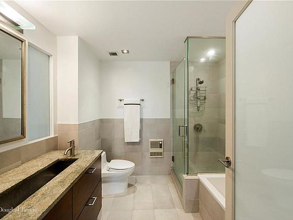This one checks off all the boxes. + Boutique Condo + Large Living Room + Chef's Kitchen + Private Outdoor Space + Parking (sold separately) + Central Air Conditioning + Washer/Dryer + Private Storage This sun-flooded, quiet two bedroom, two bathroom home has open views of the Manhattan Skyline (Empire State, Chrysler++) and the East River! Wide plank maple wood floors lead to the beautifully appointed kitchen, where the Nero Impala countertop and walnut cabinets surround Viking gas range, Sub-Zero refrigerator, Kohler stainless steel sinks, and Bosch dishwasher. The master bathroom features cream porcelain tile, brushed stainless steel fixtures, custom stainless steel sink, a deep-soaking tub, and a separate shower. The second bathroom is defined by warm grey porcelain tile and brushed stainless steel fixtures. On the border of DUMBO and Vinegar Hill, the location is ideal. Tre- lined cobblestone streets lead to the waterfront, parks, shops and cafes. Grocery shopping is a breeze at newly opened Wegman's (and they deliver). Cafe Gitane is a couple of blocks away as is the famed Vinegar Hill Cafe. The building is pet friendly (2 pets max up to 75 lbs combined), has bicycle parking, a fully equipped gym, a garden, a roof deck with gas grill, and a part-time doorman M-F 4-11pm. F, A, C subway, and water taxi a few blocks away. All showings are by private appointment.