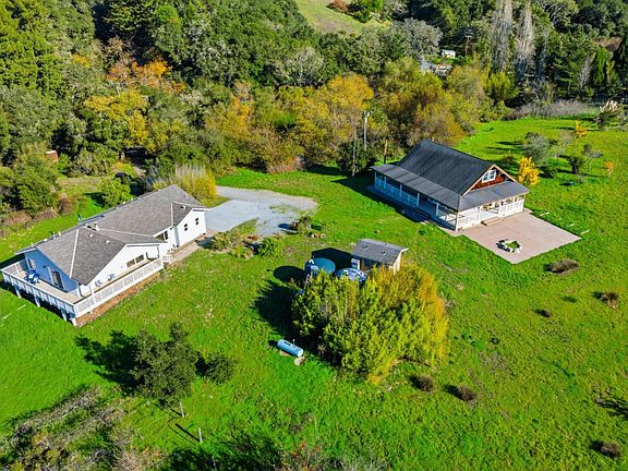 Tucked into the Corralitos hills this 6.6-acre property offers modern country living with space to stretch out. Fully fenced and gated, the land is highly usable and walkable with all day sun exposure, ocean and valley views, and gorgeous sunsets. The 2016 main home features 3 bedrooms, 2 baths, and 1,548 SF of contemporary comfort. A 596 SF deck and covered porch extend the living area outdoors for relaxing or taking in the views. Nearby, the original 2BR/1BA home remains onsite as a valuable bonus structure ideal for workspace, storage, or future re-imagining. The upstairs is a finished loft ideal for extra storage. Improvements include a newer productive well, an upgraded septic system serving both homes and multiple outbuildings including a garden shed with hot water for washing up after outdoor projects. The land offers small delights everywhere: fruit trees, a calm pond, an old vineyard still producing grapes, primarily Syrah and Pinot Noir, and across the road, a beautiful creekside setting with towering redwoods. Plus the property is not far from Mt. Madonna State Park with access to miles of hiking and horseback riding trails. With excellent sun and easy access, this is peaceful, spacious country living in a setting that is meant to be enjoyed.