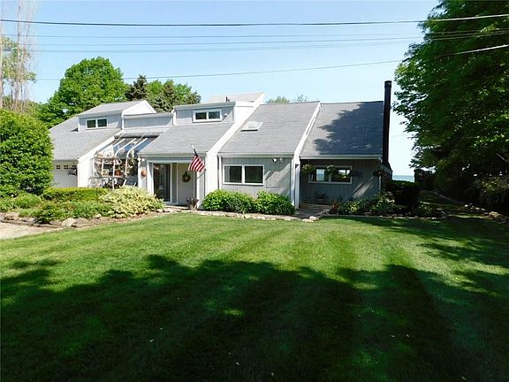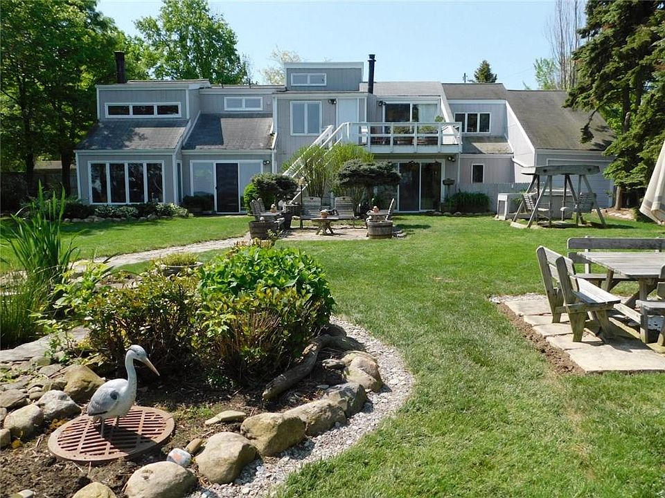Enjoy Beach and Lake Front Living with no steps or bluff on this prime 1.8 acre lot with your 105' private beach right on the shores of Lake Erie. Five minutes from North East Marina and Downtown North East. Huge living room and family room with tons of built-ins and storage. Wake up in the Master Suite and enjoy your morning coffee on the sliding glass door balcony with breathtaking views of the lake. Awesome views of Lake Erie sunsets everywhere you turn. 3200 sqft with 4 beds and 2.5 baths.