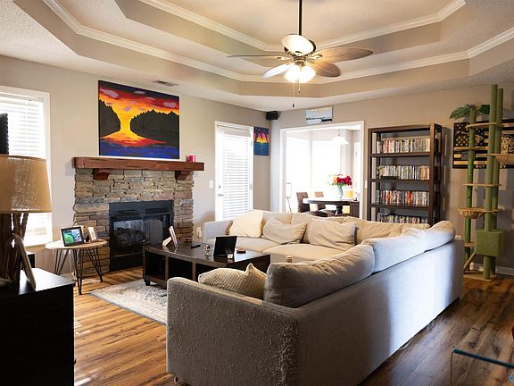 Great starter home in award winning school district. Full brick rancher offers 1422 sq ft, 3 BRs, 2 BA w/laminate & tile flooring in formal & wet areas; large Master with walk in closet, glamour bath w/whirlpool tub & separate shower; Kitchen offers stainless steel appliances , backsplash & pantry. Gas Fireplace . Fenced backyard, w/pergola, & detached 12x20 building for storage. 2 car garage. New Roof 2025; New compressor 2025; Gas Water heater 2017; new paint 2023; new carpet 2024; 20 minutes to downtown HSV/Hospitals & shopping. Riverton Elementary/Buckhorn Middle and High school. MBR curtains do not convey; Refrigerator remains at no additional value.