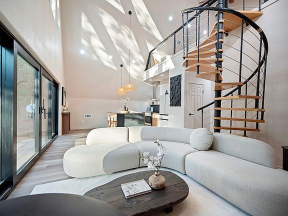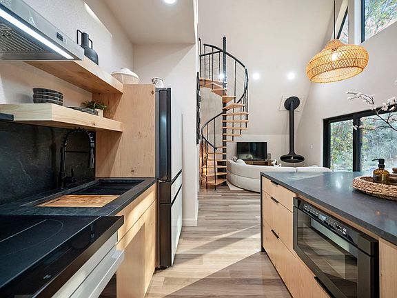 Private hot tubWooded acresUpscale finishesHigh-end craftsmanshipOpen-concept layoutSerene surroundingsSoaring windows