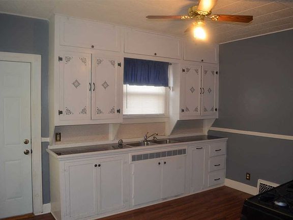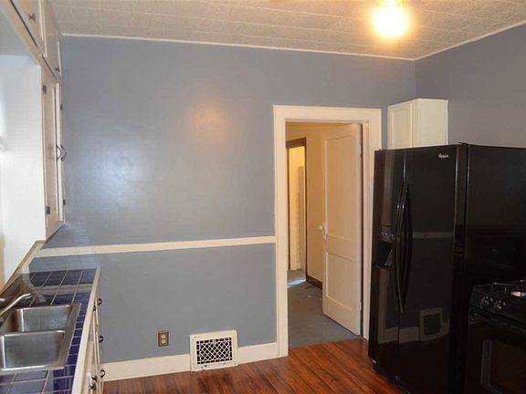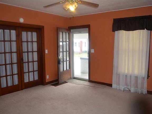 Enjoy the great curb appeal as you walk up to our covered front porch! Come visit the nice 2 bedroom, 1 bath home located near schools shopping and more. Large open kitchen with lots of cabinets. The original stained woodwork is an awesome feature of this home. A beautiful set of French doors lead from the large living room into one of the bedrooms. Nice closets. The bathroom boasts a claw foot tub and built in shelves. Replacement windows, R-4 insulation - full unfinished basement with laundry area. Ready for immediate possession.