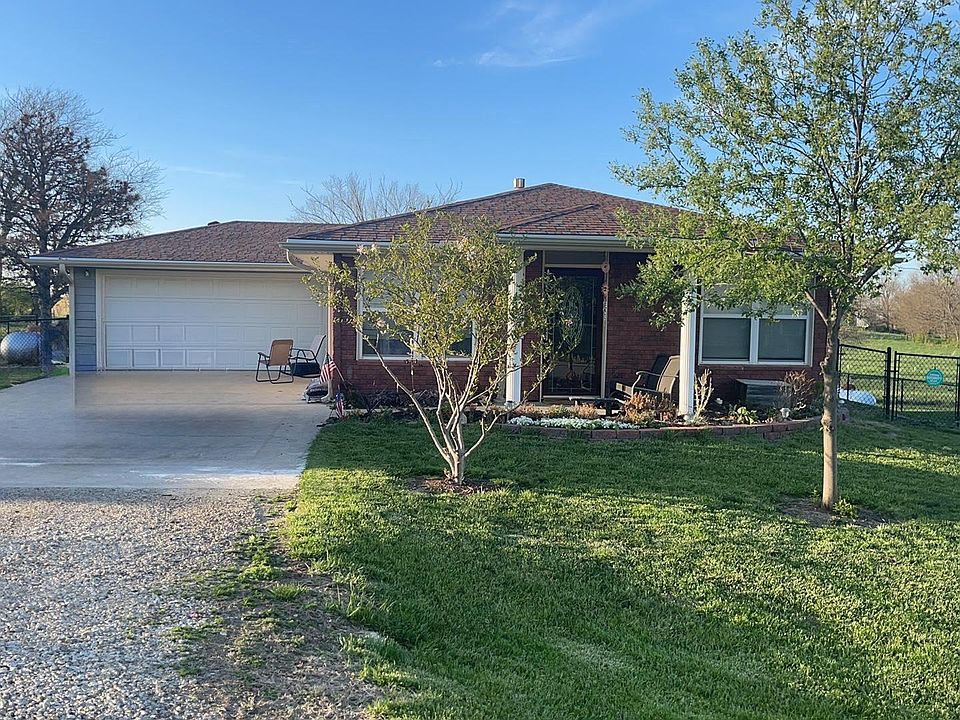 Well loved 3 Br, 2 Ba, 2 car garage, safe room. New siding, flooring - fenced.