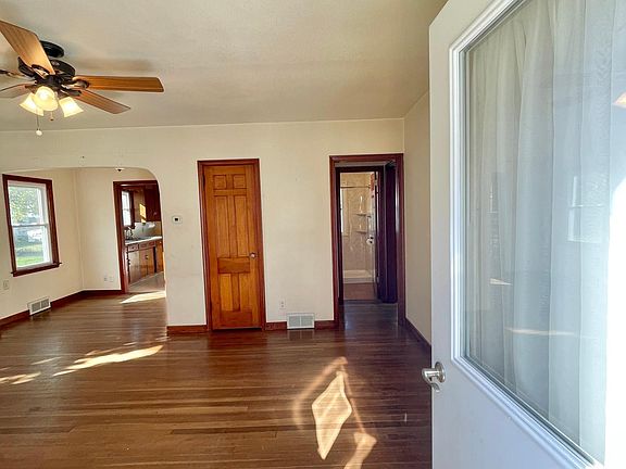 Located close to the school, this charming 2 bedroom, 1 bath single story home features hardwood floors, a spacious living room, a dining room leading into the kitchen, an updated bathroom with a walk-in shower, great storage space throughout, and an unfinished basement with potential for additional living space! Recent updates include newer windows, shingles, a gas forced air furnace, and a hot water heater. The backyard has a single detached garage and plenty of space for a garden area and enjoyment!