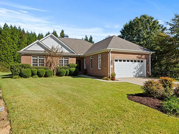 Beautiful brick ranch on a cul-de-sac in the highly sought after gated community of Hunters Ridge at Green Valley. Step inside to gleaming hardwood floors, beautiful custom cherry cabinetry with new granite countertops, huge windows with transoms to let in all the sunlight, custom window treatments. Custom trim and molding throughout with tray ceilings in Dining Room and Primary Suite, the home features 9 foot ceilings, 12 foot in formal living room with cozy, convenient gas log fireplace. Primary bath has huge roll in shower. Enjoy the bright and airy den with 4 skylights and wall to wall windows with a view to your private outdoor two-tier deck. A truly low maintenance home with brick, vinyl windows and aluminum trim. The garage is wired with a car charger outlet. New in 2024: HVAC (with remaining transferrable 8 years prepaid maintenance agreement), Roof, composite deck, carpeting and stove. Easy Swamp Rabbit Trail bike access to quaint Travelers Rest or down to Greenville all without crossing any busy intersections. Enjoy the Hunters Ridge lifestyle: take your golf cart to Green Valley Country Club for a round of golf, play a little tennis or pickleball, bocce ball, swim in the pool or take the pooch on a lovely walk through the 7-acre walking park that runs along the golf course and Reedy river. The community has a social activity for everyone whether it be monthly potlucks, yoga, poker night, game night, book club and many other events in the beautiful pond-side clubhouse. This home and active community are a must see.