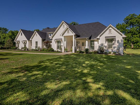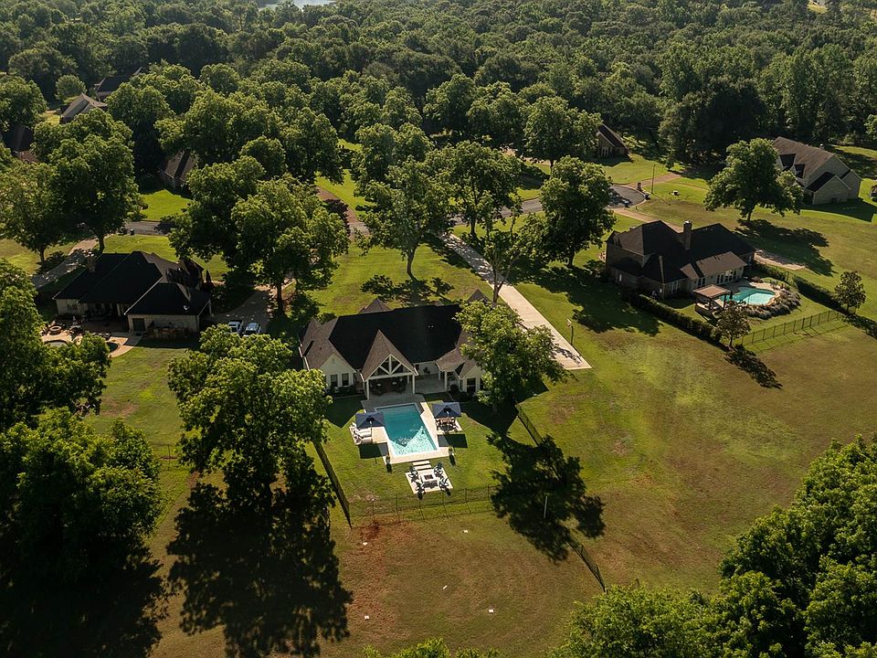 Impeccably designed and curated custom home situated on 2 acres in Bullard, Texas. Built in 2019, the owners worked closely with the builder to create a stately traditional one level home with modern amenities to accommodate the most discerning of home buyers. Take a breath of fresh air as you drive through the neighborhoods' gated entrance. Upon entering the main foyer natural light abounds showcasing the main living room with an oversized fireplace and large windows. With an open floorplan the dining area is flanked by the exquisite kitchen and living room. The kitchen features double ovens, built in refrigerator and freezer, gourmet range with custom hood and ample counter space and cabinet storage, as well as a breakfast bar. Tucked behind the kitchen is a sophisticated bar with storage for stemware opposite from the oversized butler's pantry. Hardwood floors spread throughout the entirety of the home and the plantation shutters add to the charm of this Southern style home. The primary suite houses a large closet connected to the laundry room and office nook and a luxurious bathroom with separate vanities, walk in shower and soaking tub. The opposite wing of the home features 2 bedrooms connected by a large, shared bathroom with 2 vanities. The fourth downstairs bedroom offers an ensuite bathroom and down the hall is the 2nd Livingroom with a media cabinet and game closet. Upstairs is an additional bedroom or bonus room and full bathroom as well as a heated and cooled storage space. The expansive outdoor living area features a large covered patio, outdoor kitchen complete with a green egg and EVO pizza oven, plenty of lounge space surrounding the sport pool and is capped off by the well designed outdoor fireplace and seating 3 car side entry garage features epoxy flooring and workspace. 20 Minutes to downtown Tyler, this home strikes the perfect balance of serene country living with the ease of access to shopping and schools. Welcome to your next home!