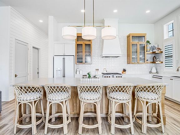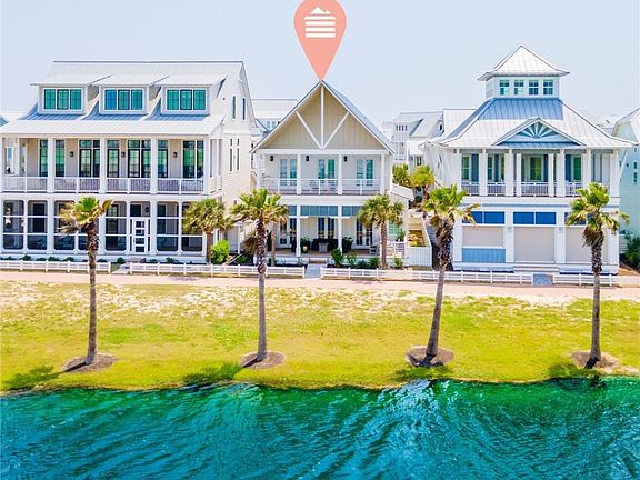Luxury lakefront living combined w/ breezy decorator finishes & modern design make this Cinnamon Shore South beach retreat truly unforgettable.1st-floor, open-concept living w/ shiplap accent walls includes dream kitchen w/ 6-burner stove, large island, dining space w/ banquet seating, & wet bar w/ beverage fridge. There’s even a cozy fireplace for breezy, coastal nights, a built-in reading nook & a large lakeside porch, just a few of the unique features of this beach beauty. A powder room, guest queen suite, laundry, outdoor shower & garage complete this level. The 2nd-floor primary suite is breathtaking. Lounge on your private balcony overlooking South Town Lake, relax in a soaker tub, or rinse off the day in the massive shower. Guests will enjoy a 2nd king suite, as well as a queen bedroom & a bunk room that share a bath. Head down the brick path to the lakeside boardwalk & pool complex, stroll to the beach, or just laze the day away in Cinnamon Shore style. Sold furnished. ’24 Rental Income: $90,492