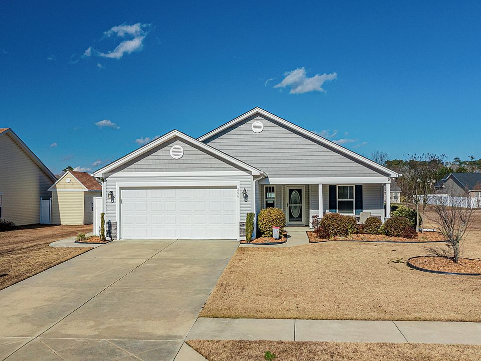Just like new and ready for a new owner! This immaculately maintained home looks just like new. Some of the many features include granite counters, stainless appliances, wood look vinyl flooring in the common areas, vaulted ceilings, open concept living space, split bedrooms, two walk in closets in the owners suite, professionally landscaped lawn with zoysia grass and irrigation system, electric pet fence, additional concrete paito and sidewalks, detached storage with electric, surveillance system and so much more! Community is located within the desirable Saint James School district. Only minutes to shopping, restaurants, the beach and all that Myrtle Beach has to offer!
