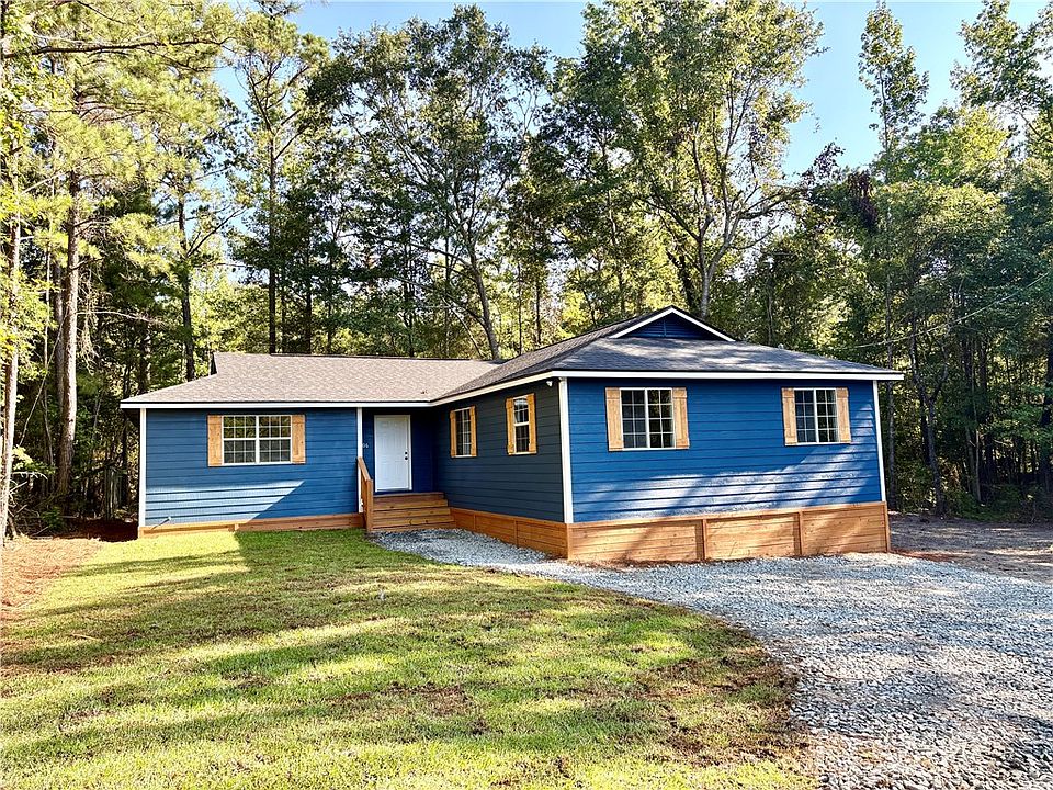 Looking for country living without the hassle of having to keep up with acres and acres of land? Here you go, friend! This 4 bedroom 2 bath, newly renovated home sits on .50 acres but it tucked back in the woods so it feels like you're deep in the country. There's plenty of privacy and beauty to enjoy while sitting on your newly built back deck. Inside this home you will find LVP throughout, excluding the bedrooms which have new carpet installed. The semi open concept living area, dining area, and kitchen will wow you! The kitchen features black granite countertops, new white cabinets, and new stainless steel appliances. There's a spacious laundry room that could easily become a pantry as well with just a few shelves. The Primary bedrooms offers an ensuite walk in closet and en suite full bathroom. The completed updated bathroom is complete with walk in, tiled shower, double vanity, and mirror that has multiple light modes and defogger. The other 3 bedrooms all offer spacious closets with lights and great views of the country out of the windows. The hall bathroom features a tub/shower combo with custom tiles, updated vanity, and mirror with multi light feature, and de fogger. Come take a look at this country home and fall in love!