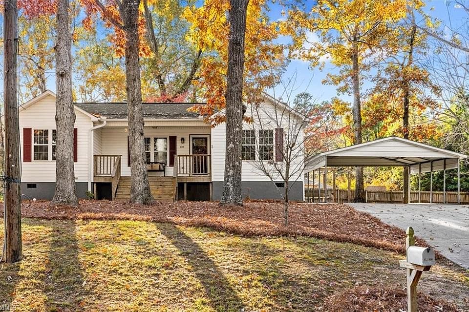 Classic 3-bedroom, 2-bath ranch nestled on a quiet, tree-lined street just a short stroll from charming Main Street in downtown Jamestown. Recent updates include fresh interior paint, new carpet, and stylish lighting. The open floor plan features a cozy living room that flows seamlessly into the breakfast area and kitchen, complete with dark granite countertops, freshly painted cabinets and a convenient pantry. Separate mudroom/laundry room entry from detached carport. The primary suite offers a spacious walk-in closet and a tastefully updated bathroom. Two additional bedrooms share a well-appointed second bath. Enjoy the spacious, private backyard with a concrete patio—perfect for relaxing or entertaining.