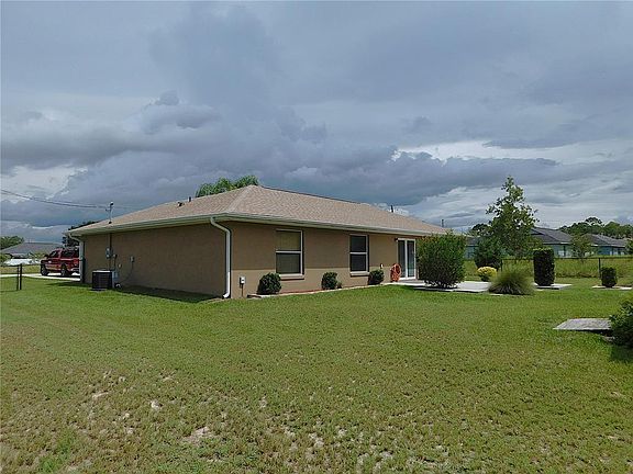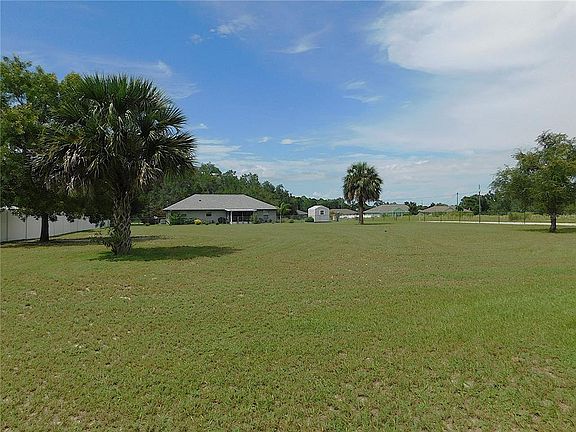 MOVE-IN READY 3BR/2BA/2GA HOME ON .24 ACRE LOT... WITH EXTRA .47 ACRE CLEARED LOT!! What a fantastic opportunity to add another home for family or a dream workshop/garage for storage... Newer roof! Newer HVAC! No Carpet! Open floor plan! Completely Fenced! This home has been meticulously cared for and features screened front porch entry, great room with vaulted ceilings & sliders to a designed back patio, great kitchen layout w/updated appliances, pantry closet, eat-at bar & dining area, primary suite w/walk-in closet & BA w/designer tile shower, 2 guest bedrooms w/double closets, guest bath w/tub combo, inside laundry room w/washer, dryer & storage cabinets.. Double garage with auto opener & long driveway.. Beautiful backyard is completely fenced with large storage shed, matching covered well pump and cleared with palm trees.. This property consists of 2 parcels with one being a cleared .47-acre lot with double gates for whatever your heart desires (house, garage, pool).. Neutral finishes throughout the home, upgraded ceiling fans in every room, upgraded window coverings, sliding doors with blind inserts, whole-house gutters/downspouts.. Close to shopping, banking & schools.. THIS IS THE ONE!