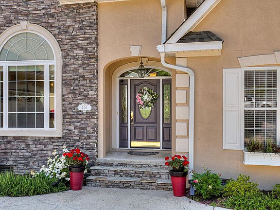 The home has tons of visual appeal, too, inside and out. The stone and stucco front with its arched portico provide the curb appeal.