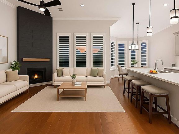 All-side masonryWood flooringWater softenerFormal dining roomStainless steel appliancesCeiling fansQuartz countertops