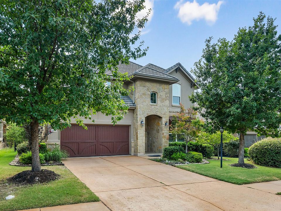 Immaculate Executive home with low maintenance yard 4-bedroom, 3.5-bath, 2 living in Rough Hollow offers the perfect blend of luxury and comfort. Upon arriving, you’ll be impressed by lovely curb appeal, featuring lush landscaping, a rich wood garage door, and striking all-side masonry with a blend of stone and stucco. Step inside to discover dramatic vaulted ceilings, beautiful lighting along the main corridor and wood flooring throughout the main level. The formal dining room exudes elegance with a sophisticated chandelier. The gourmet kitchen is a chef’s dream, with its soft grey cabinetry, a large center island, quartz countertops, a safer-than-gas 5-burner induction cooktop, stainless steel appliances, and a classic white subway tile backsplash. The main level offers a serene primary suite with new windows and a luxurious bathroom that features a free standing soaking tub, separate vanities, a separate shower and a spacious walk-in closet. A secondary bedroom with custom built-in cabinetry and shower on the same level provide flexible living options for guests or family. Upstairs is a private retreat with two spacious bedrooms, a full bath, a generously sized game room with an additional powder room—perfect for entertainment or relaxing with all new carpeting and paint. Featuring all new ceiling fans inside and out, new light fixtures, added sink and cabinet in laundry room, whole house water softener, crown molding, dramatic vaulted ceilings, extra water filter in the kitchen, a ChargePoint HomeFlex Level 2 EV Charger (50 AMP/ 240 Volt), and a custom-built ladder for access to the attic above the composite floored garage. Step outside to enjoy large, covered patio overlooking nearby greenbelt, creating a peaceful backdrop for everyday living. Rough Hollow amenities include three pools and lazy river, sports courts, dog park & an event pavilion. Yacht Club & Marina, free paddle-boards and kayaks, a resort-style negative edge pool, fitness center, and restaurant