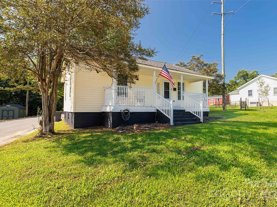 Welcome to this beautifully maintained 2 bedroom, 2 full bath bungalow on a spacious corner lot in the heart of Clover, SC! This 1950s home blends old southern charm with sleek modern updates, featuring tall ceilings, light and airy rooms, and fresh paint throughout, and ready to call home. Two beautiful fireplaces serve as striking architectural accents, adding warmth and character to the secondary bedroom and living room. The spacious kitchen shines with new stainless steel appliances, while other recent upgrades include—fresh gravel for the driveway and R-30 attic insulation—add peace of mind and efficiency. Relax on the rocking chair front porch or enjoy the comfort of the fenced backyard under the stars. Mature trees frame the property beautifully, adding shade and character. Ideally located in the desirable Clover School District with easy access to shopping, dining, commuter routes, just minutes from Lake Wylie and Charlotte, this charming bungalow is ready to welcome you home.