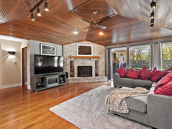 Welcome to your charming brick ranch nestled on a serene dead-end street! This delightful home boasts 3 bedrooms and 3 bathrooms, offering spacious comfort for all of your needs. As you enter, you're greeted by the inviting vaulted ceilings and wood burning fireplace that lend an airy feel to the living space, creating an open and welcoming atmosphere. The heart of this home lies in its large kitchen, perfect for culinary enthusiasts and family gatherings alike. Large eat in area to congregate as well as plenty of cabinet and counter space for your cooking needs! The sunroom provides a tranquil retreat where you can bask in natural light while enjoying your morning coffee and all that nature has to offer. Step outside into your fenced yard, complete with a deck, offering the ideal setting for outdoor entertainment and relaxation. The two and a half car garage provides ample space as well as a ramp leading into the home. First floor laundry room allows for ease in day to day living. The large unfinished basement offers endless possibilities for expansion or customization to suit your needs as well as crawl space for additional storage. Roof - 2023, Furnace and A/C -2021, water heater 2019. Don't miss your chance to own this gem of a property!