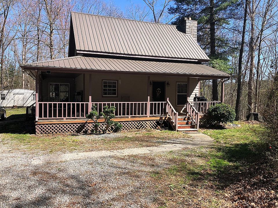 Sold as is. Price lowered! Charming 3-bedroom 2 bath Cape Cod style home with hardwood floors and a wraparound rocking chair porch with relaxing sunroom on one end. Nestled in a tranquil mountain setting with hardwood trees across all 2 acres of the property. Fall in love with the extra-large upstairs bedroom, that has enough room to include a setting area and 2 walk-in closets. The upstairs bathroom is to die for with 2 separate vanity areas, one with your sink and another that includes a nook for a chair.
