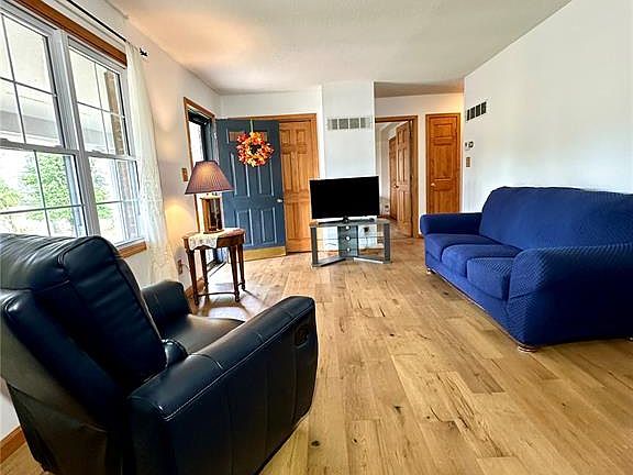 Spacious Home with Bonus Lots, Basketball Area, Fenced Yard, 2-Car Garage & Walk-Out Basement! Located on the edge of town, this beautiful 2,428 sq. ft. home offers space, comfort, and endless possibilities! Featuring 4 bedrooms and 2.5 baths, including a master bedroom with walk-in closet, custom oak kitchen cabinets, solid wood doors and trim, tilt-in windows, full basement and freshly painted rooms. The beautiful vaulted ceiling, 25’x25.3’ great room is the heart of the home—perfect for family gatherings and entertaining. New wood flooring in the main living areas, tons of closet space, a newer roof and water heater, propane insert fireplace, and all appliances included, makes this the perfect move in read home. The semi-open layout flows between the kitchen, dining, and living spaces. The large island offers storage and a great serving area perfect for casual meals, hosting guests or snacks while kids are doing homework. The great room provides easy access to the patio and fenced backyard, and if you need more bedrooms or office space, it’s spacious enough to divide for additional rooms. Outside, you’ll love the fenced backyard and large bonus side lot with basketball goals and plenty of open space—ideal for recreation, pets, gardening, or adding a shop. The north side lot features a culverted driveway with city water and sewer hookups, offering a unique opportunity to build and sell another home or expand your outdoor space. With this homes size, updates, oversized two-car attached garage, fenced yard, extra land, and prime location, this property offers exceptional value, flexibility, and investment potential.