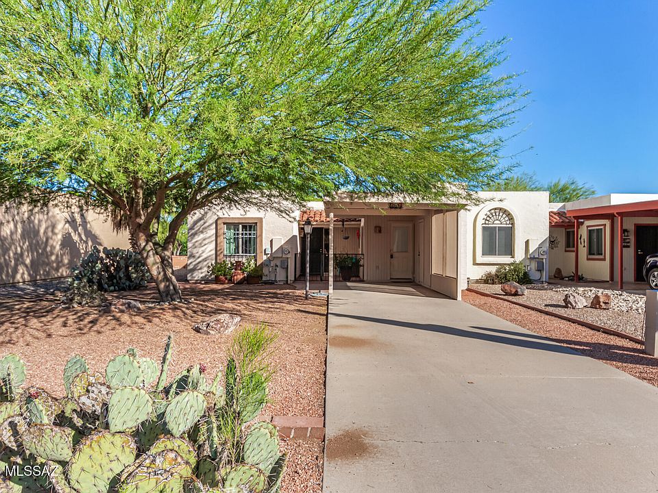 Home, sweet home! This charming 2-bedroom townhouse welcomes you with a practical carport, a low-maintenance desert landscape, a mature Palo Verde tree for natural shade, and an inviting front patio. The serene living room features a soothing palette, recessed lighting, and durable tile flooring. Cook delicious meals in the eat-in kitchen, equipped with flat-panel cabinetry, contemporary track lighting, and essential built-in appliances. The main bedroom includes double built-in closets with mirrored doors that enhance the sense of space and a private bathroom for added comfort. Spend peaceful afternoons in the lovely backyard, which offers a covered patio, stylish pavers, and pristine artificial turf. Don't miss out on this fantastic opportunity!
