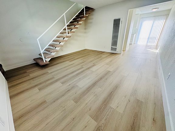 Don't miss this charming and modern 2-bedroom, 1.5-bath apartment located in a desirable Burbank neighborhood! Nestled in a well-maintained, quaint building with off-street parking, this unit offers the perfect blend of comfort and convenience. Step inside to find gorgeous new wood-look vinyl flooring and fresh paint throughout. The spacious living room flows seamlessly into the dining area and updated kitchen, creating an open and welcoming atmosphere. The remodeled kitchen features sleek quartz countertops, stainless steel appliances including a range/oven, built-in microwave, large sink, and a refrigerator everything you need to cook and entertain in style. Downstairs, you'll find a convenient powder room for guests. Upstairs are two generously sized bedrooms and an updated full bathroom with modern finishes. Additional features include new window coverings, in-unit washer hookup, and access to a community laundry area. Located close to shops, restaurants, parks, and studios, this beautiful apartment is a must-see!