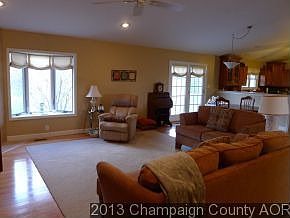 Exceptionally clean great room ranch on a cul-de-sac. Vaulted ceilings in the open living room, eating area and kitchen. The custom kitchen has Cherry cabinets and Corean counter tops. In the living room is a corner gas log fireplace and the door to the deck and back yard. The master suite features a walk-in closet, a four foot shower and a jetted bathtub. The over sized 30 x 24 garage has plenty of storage space and an area for a work bench. The siding was new in 2010, refrigerator and washer dryer new in 2009 and the windows are Anderson thermopane. The private backyard of this home has a large deck with a view of the pond. The underground electric dog fence will stay with the property.