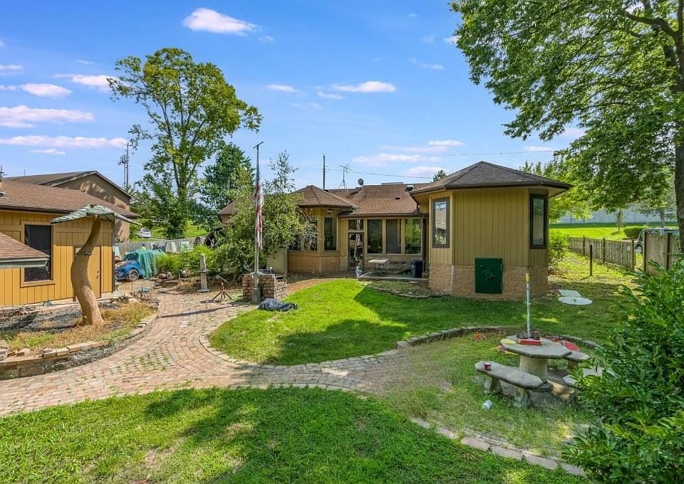 Such a unique property, situated on a larger lot in the heart of Gladstone! The seller has owned for 45 years and has taken a tremendous amount of pride in his work on the home, including updated bathrooms and kitchen, brand new carpet, and fresh interior and exterior paint. Beautifully stained cabinets in the kitchen tie in the granite countertops and stainless steel appliances. The dining room is large enough to host 10 people and includes built-in cabinets and a large countertop with stunning floor to ceiling windows consuming an entire wall. This is a true two bedroom home, but has potential for one, if not two more bedrooms. Enjoy the enclosed porch year round and the potential your unfinished basement has with egress access. This home also has an oversized outbuilding with just under 1,000 square feet, per the appraiser's measurements, and the outbuilding will convey with the gantry crane. Connected to the outbuilding is a small additional area for an office or living space with a bathroom and shower included. RV hookups, dump site, and a large shed, this property truly has it all! Conveniently located in Gladstone with no KC e-Tax, walking distance from Hobby Hill Park, a 6-acre park featuring picnic grounds, a park shelter, and nature trails. This home has a large one-car attached garage. It likely could fit two cars but has one door. In addition, it has an additional detached garage.