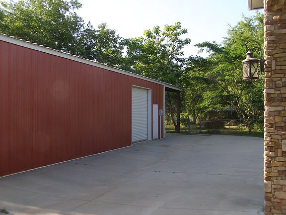 This is low maintenance country living--there is metal roofing and metal siding on the outside with ceramic tile and laminate inside! The rock fireplace housing a gas fireplace gives the large den a country lodge feeling. The large master BR has an adjoining bonus room that serves a walk-in closet. The laundry/craft room also adjoins. There are two central HVAC systems; both are completely new in 2016. The house has a large carport that easily accommodates 3-4 cars. There is also a 1500 sq. ft. barn with 3 roll-up bay doors. The barn has electricity and limited water. The double lot (1.93 acres) is partially fenced. A deep well provides good-tasting water, and all electricity from the pole is underground.