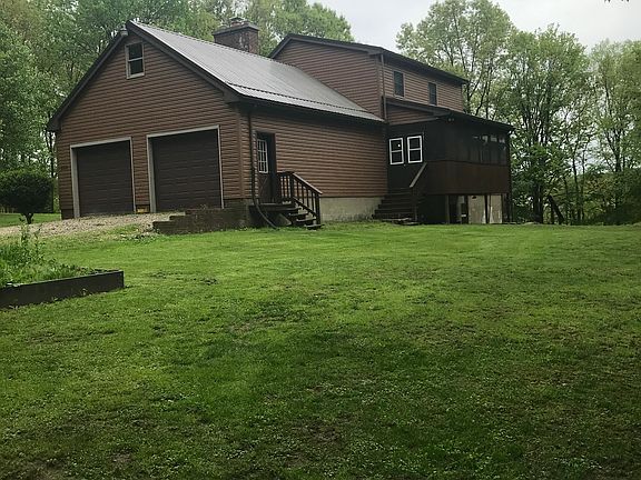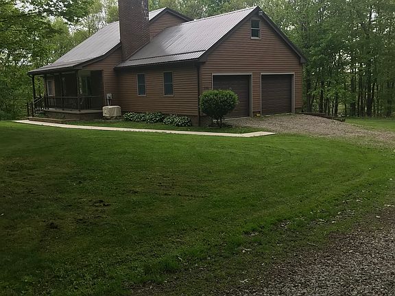3 bedroom, 2.5 bath cape cod home in United school district, situated on a 1.1 acre private wooded lot, with private lane. Living room with updated laminate flooring, large bay window, and stone fireplace. Fireplace currently contains natural gas logs, but can easily be removed and returned to wood burning. Dining room has oak crown molding, hardwood floors, and french doors opening onto a screen porch for relaxing or entertaining. The large kitchen contains two pantries as well as updated stainless steel refrigerator and dishwasher. First floor laundry has been updated with new washer, gas dryer, and utility sink. First floor master suite features walk-in closet and private access to upstairs loft. Master bath has jetted soaker tub, perfect for relaxing. Upstairs there are two bedrooms with large closets, a full bathroom, loft, and walk-in attic. The bathroom was updated in 2012. Full walk-out basement opens onto a brick patio. Basement was finished in 2013, and features a natural gas fireplace, stone bar with tap system, kitchen, and 1/2 bath. There is a 24 x 24 attached 2-car garage with walk-up storage above. Built in 2011, 1000 square foot detached 3-car garage is insulated, heated, and stubbed for water. Additional updates include metal roof and seamless gutters in 2012, re-crowning of chimney in 2011, and new natural gas furnace and central air module in 2017. Please call 814-421-5939 to schedule a tour. Please no drive-by as this is a private lane. Thank you!
