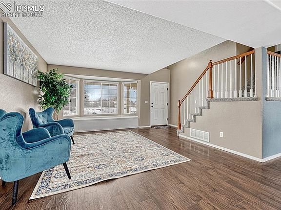 Is This Your New Home in Jackson Creek? Welcome to your perfect home in the highly sought-after Jackson Creek neighborhood! This property has it all, from mountain views, to easy access to walking path, to a thoughtfully designed interior with features that cater to every lifestyle. Upon entering, you'll immediately notice the abundance of natural light filling the open and bright living spaces. The main level boasts beautiful wood laminate floors throughout, including the open concept kitchen, complete with solid stone countertops, light cabinetry, and a walk out to the backyard with mountain views. The adjoining family room is perfect for cozy evenings, featuring high vaulted ceilings and a gas fireplace. Both the living room and formal dining room offer large bay windows with seating with storage, creating inviting spaces to relax and entertain. Step outside from the kitchen or family room onto the large deck, where you can host gatherings or simply unwind and enjoy the spacious backyard. The fully fenced backyard makes it perfect for the family dog. The upper level features a luxurious primary suite with vaulted ceilings, an enormous walk-in closet, and a spa-like five-piece bath, including a large soaking tub for ultimate relaxation. Three additional bedrooms and a full bathroom complete this level. The fully finished basement adds even more living space and functionality. It includes a recreation room with a large wall that's perfect for a movie projector screen, or a big screen TV for entertaining family and friends. This level also includes an additional bedroom, full bath, and ample storage space. You're sure to enjoy everything this home has to offer. It's located near parks, hiking trails, and top-rated schools in the award-winning District 38, within walking distance to Bear Creek Elementary, his home offers a lifestyle that’s hard to match. Don't miss your chance to own this Jackson Creek gem—schedule your showing today!