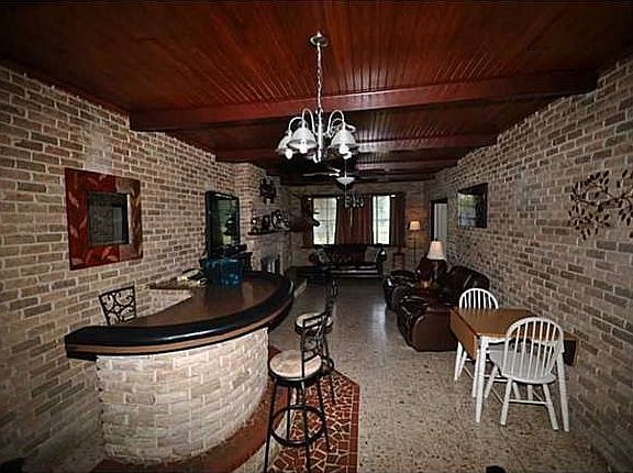 206 Parhart Road in Ragley Large 4 bedroom 2 1/2 bath ranch style home on over an acre just 10 miles off Hwy 171 in Ragley. Home features wood ceilings in den with curved beverage bar and terazzo floors with beautiful brick fireplace. Lots of prep space with an extra large utility room with island and 1/2 bath. Kitchen has tin backsplash, double ovens, electric stovetop, refrigerator, and a ton of cabinets with an eat in breakfast area. The 29x14 Master bedroom could be game room. Hardwood redwood floors in three of the bedrooms and tile in other rooms. House has updated electrical panel and new A/C Unit. Large 38' garage and covered patio with fenced in yard. Not in a flood zone. $159,900