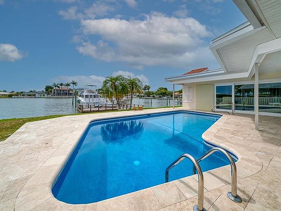 Located in the highly coveted neighborhood of Harbor Bluffs, this light-filled home embraces indoor–outdoor living with walls of sliding glass doors that frame resort-style pool and tranquil water views. The spacious, updated kitchen opens seamlessly to the family room and features custom cabinetry, granite countertops, stainless-steel appliances, an oversized breakfast bar, and direct access to the pool; perfect for effortless entertaining. The thoughtful split floor plan includes a versatile bedroom with a Murphy bed and ensuite bath just off the kitchen, along with a large laundry room offering a sink and abundant storage. Another bedroom has been transformed into a generous dressing room, while the expansive primary suite offers private sliders to the patio and pool, plus a beautifully updated ensuite with granite counters and a walk-in shower. The updated pool is surrounded by a stunning Travertine deck, an ideal setting for relaxing, entertaining, or heading out on your boat for a day on the water. All of this in an unbeatable location close to shopping, dining, two airports, and the area’s world-famous beaches.