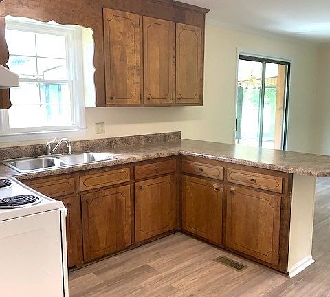 Refreshed with new carpeting, laminate flooring, new metal roof with transferable warranty, new windows, new interuir doors. freshly painted and huge sunroom. Attached carport plus additional parking. Large, fenced corner lot. Storage building and fenced dog pen.