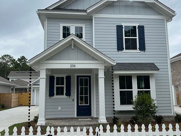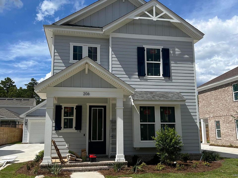Deer Moss Creek, Brookfield, is a strategically planned community with each home built perfectly to suit each lot. This Florida Craftsman style home, the Chestnut, has 4 bedrooms, 2 1/2 baths with the primary bedroom located on the main floor and three additional bedrooms upstairs. A welcoming foyer greets you and leads you to a spacious living room and a lovely kitchen and cafe dining area. Kitchen boasts soft close drawers, stainless appliances incl. refrigerator, apron sink, quartz counters and a pantry. This home has over $10,000 in added features including herringbone brick on rear porch, soffit outlets, touchless, keyless entry doorknob, smart thermostat, custom subway tile behind range, port filler, rain shower head, smart feature toilets and all LVP floors! July 1 completion!