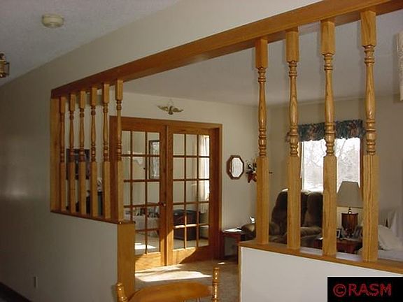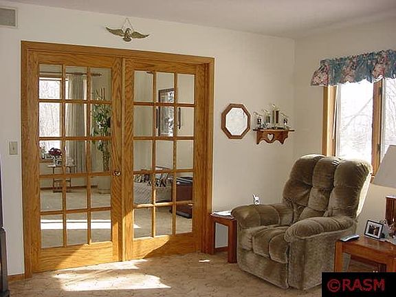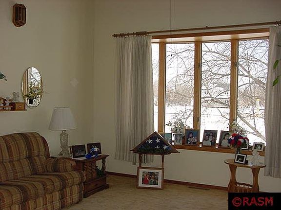Only about 5 miles from Mankato city limits, near Red Jacket Trail and Mt. Kato. Situated on 1-1/2 acre lot. Basically towns edge of Mankato, but with Good Thunder mailing address; Mankato schools. Main floor: Formal living room with vaulted ceiling, French doors to family room; eat-in kitchen; patio doors to deck; formal dining room; hall closet with plumbing for laundry; 1/2 bath; office/den/bedroom. Upstairs: 4 bedroom, master bedroom with walk-in closet, private bath, French doors to balcony; additional full bath. Basement: large rec. room; ample storage. Attached double garage. Additional detached 26 x 40 garage. 4 party well. Footings in for future fireplace. Efficiently heated with heat pump, on Dual Fuel program. Sellers actually have mowed and gardened on land owned by others to the west. Conventional or cash offers only. Non-contingent offers only. Price reflects that Buyers will need to upgrade septic at buyers expense.