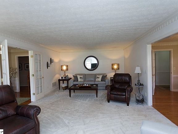 In the Heart of the Eastside, this 4 bedroom 2 1/2 bath sprawling one level home offers easy living with its large rooms, acre+ flat lot, sun room, elegant French Country kitchen and is designed for entertaining. The owners have lovingly maintained and updated the home and the landscaping. This home is in Pelham Estate 3 which can join the PMP Pool & Tennis Courts. You will also find great schools and easy access (about 10 minutes) to downtown Greenville , the Patewood Hospitals, Woodruff Rd. Shopping and Greenville-Spartanburg Airport. Make an appointment to see this home soon!