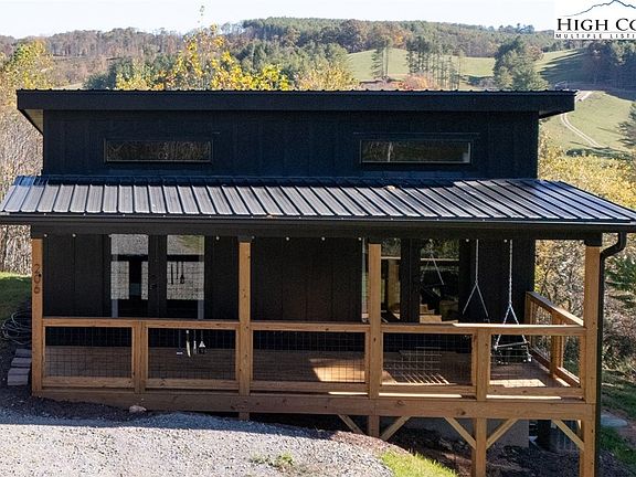 This modern mountain home delivers on maximizing light and views with large windows and vaulted ceilings throughout. Completed in 2025, the modern decor creates a sense of calm and allows you to focus on relaxation. Enjoy the views from both inside the home and outside on the 300 sq ft deck overlooking rolling mountains and long range peaks in the distance. The front porch is a great spot for sunsets and the adjacent fire pit area with Adirondack chairs is a great place for connecting with friends and family while roasting marshmallows and star gazing. The home features an open concept living room with dining and gourmet kitchen all with vaulted ceilings. The kitchen has expansive cabinet space, GE stainless appliances, and quartz countertops. The two equal sized bedrooms feature nice size closets and sliding doors to access the deck. The bathroom is sleek and modern with quartz countertops and porcelain tile floors and shower. The home is fully furnished and comes complete with a fully stocked kitchen and bed and bath linens. Short term rentals are allowed and the home is currently on AirBNB. The New River is within walking distance and is well known for its multiple recreation opportunities including kayaking, tubing, fishing, and more.