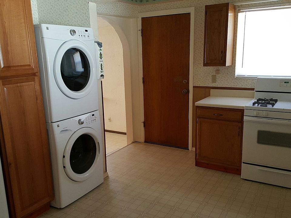 Newly renovated 2 bedroom, 1 bath home with bonus room. Hardwood floors, appliances included, new stacked washer and dryer. Covered parking, 2 storage buildings, fenced back yard, beach area. Owner pays water and lawn service. No pets or smokers. Background check required at a cost of $35 (non-refundable) with application.