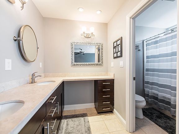 Great location just 1 block from the beach and very close to the Redondo Beach Pier and King Harbor. The Lower level features a spacious living room with high ceilings, a stacked stone fireplace and direct access to the private patio area. A few steps up from the living room is the beautiful dining area with travertine floors. The kitchen opens up to the dining and living room and has been upgraded with granite counters, breakfast bar, rich espresso cabinetry, stainless steel appliances, travertine floors and recessed lighting. The addition of a powder room and work space area make for an ideal floor plan. Upstairs offers a laundry room, spacious 2nd bedroom with vaulted ceilings as well as a beautifully remodeled full bath. The spacious master suite is has plenty of natural sunlight and features a large walk in closet, ensuite bathroom with travertine tub and shower, dual sinks and custom cabinet. This property has a two car garage and includes a refrigerator, washer and dryer.