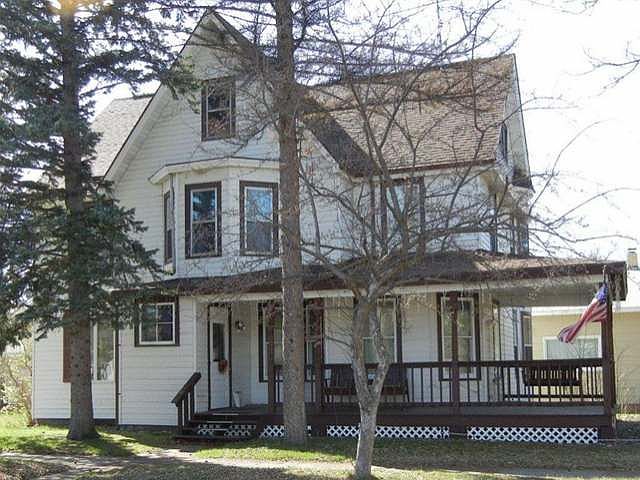 Originally built for a lumber baron, this charming Victorian home has a wraparound deck complete with front porch swing and a classic turret! Home has been vinyl sided with clad exterior storm windows and newer roof. Original features of the home include lead glass in front entry, unique entry light fixture, wood staircase, fireplace with mantel, retractable pocket dining room doors, wood flooring, and much of the woodwork! The electric service is being updated to 200 amp. This beautiful Victorian home is just waiting for a family! Call to see today!