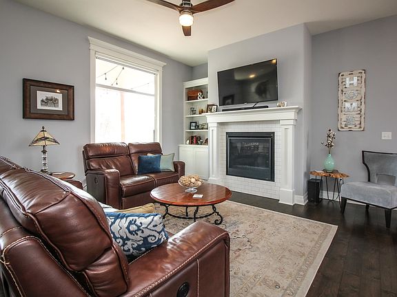 Spectacular Auburn Hills Ranch built in 2017 with NO SPECIALS! As you pull up the fabulous landscaping sets the tone for this wonderful home! You are welcomed inside by the upgraded wood and glass entry door with wrought iron appointments into a large entryway with an U-shaped stairway with custom newel posts & wrought iron balusters plus a stairway window with auto shades and a wood floor! The living room has a gas fireplace with wood and tile face including wood columns, built-in base cabinet with bookcases above, picture window with upgraded trim & auto shade, ceiling fan and wood floor! The Gourmet kitchen is just incredible with an absoulutely huge Quartz top island, glass top cooktop with a potfiller & custom hood that is vented outside, separte oven & new microwave, roller trays in the base cabinets, soft close doors & drawers, hidden walk-in pantry and wood floor! The master suite is a real retreat with large picture windows, extra high vaulted ceiling, custom chandieler and a lxurious bath with an extra deep soaker tub, tile & glass 5ft shower, Quartz top double vanity with wood trimmed mirror, water closet, tile floor and large walk-in closet with shoe and sweater racks! Large main floor laundry room with cabinetry and hanging rod! Split at other end of home are two nice sized bedrooms, one with an elliptical transom with upgraded trim plus a large hall bath with a raised granite top vanity with wood trimmed mirror and tile floor! Viewout basement boasts a great family room with viewout windows, thearter setup, wet bar with frig, Library nook with an electric fireplace and stained floor! Also finished are two large bedrooms with chandeliers, viewout windows and nice size closets plus a sharp full bath with a large Quartz top vanity and tile floor! Additionally there is a super exercise room with a foam floor! The large 3 car garage is fully insulated, drywalled & painted, upgraded insulated overhead doors with openers and walkthrough door to backyard! Out back on the east side of the home is a great covered deck and a super set up for a firepit, the yard has a custom sprinkler system that is hooked to the irrigation well! Roof and guttering were new in 2020! Additional upgraded features include: Soft close cabinets throughout – 5 panel doors – upgraded trim – upgraded door handles – LED lighting – custom blinds –Xmas outlets in soffits - 5 camera DVR security system – whole house humidifier – radon mitigation system installed as a precautionary – extra wide driveway – open wood trim in roof peaks! VW table in the garage does not stay.