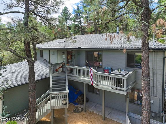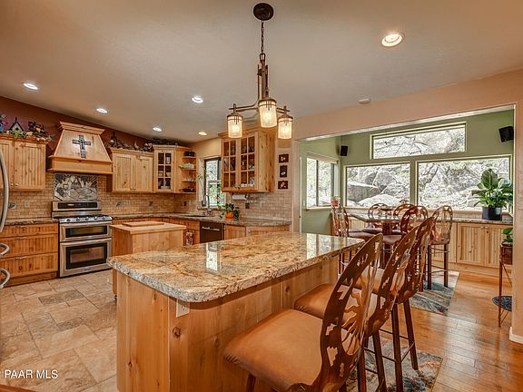Pride of ownership shows! Location is key with less than a mile to the Prescott Courthouse square yet nestled off the beaten path and in the trees and boulders, with city water & city sewer. The owners have done so many upgrades to this home. For example, replaced roof with a transferable 50-year warranty, heater, AC unit, and water heater, completely repainted the exterior of the house, replaced the rain gutters with covers, remodeled the kitchen with a Tuscany style and travertine tile flooring, renovated both bathrooms, installed wood flooring, house humidifier and so much more! Room for crafts, office, potential bedroom, or art studio. This might be a great place for a vacation rental. Check with City for regulations on VBO's.