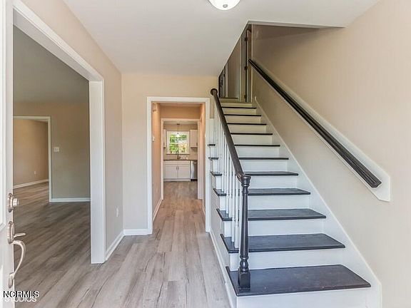 A beautiful setting for this home that has been completely redone. Exterior repaired and repainted, newer roof and doors including garage door. Don't forget the windows, storm door and gutters were replaced also and so was the HVAC! Interior is calm and completely updated with fresh paint, plumbing fixtures, overhead lighting and/or ceiling fans. There is LVP throughout, new cabinetry, granite countertops, and appliances including a natural gas stove, dishwasher, and microwave. A smaller eat-in kitchen area includes a computer desk with loads of outlets, storage and lighting. There are 3 bedrooms on the second floor and an office which does have a closet. A marina with boat slips is within a very short walking distance; and the community boat ramp is available for access to the Intercoastal and beyond. Piedmont Natural Gas ran the gas lines within the last few months. Three bedroom septic permit. Termination by buyers . Any questions can be directed to LA via call, text or email.