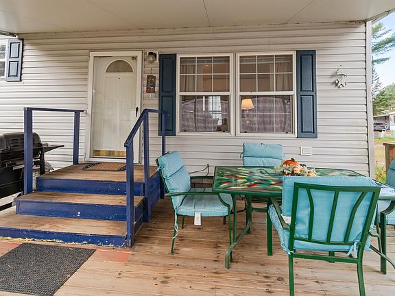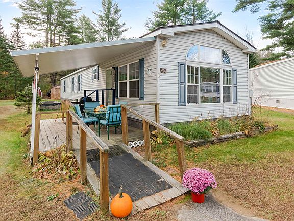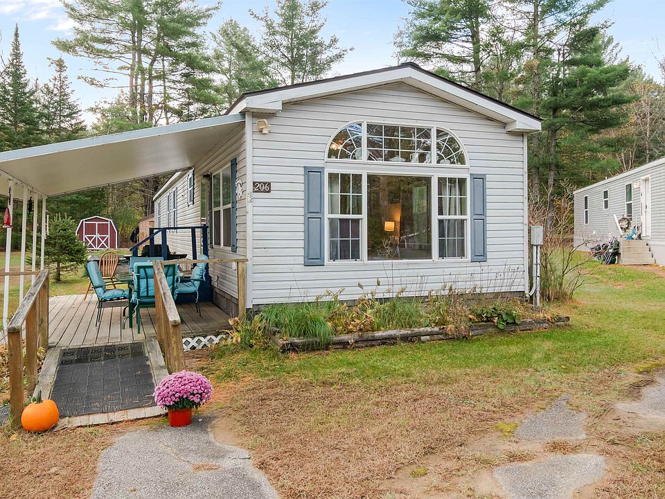 Well cared for customized mobile home with 15.5' width, unique picture window in front and larger bedrooms than most single-wides. Come see -Sandy Pines is one of the nicest mobile home parks in Central VT! Greenery all around, good space between the homes and tall pines in the background. Easy access to a wide path that allows you walking, biking XC skiing and snowmobiling and connection to the Lamoille Rail Trail. A large covered deck at the front entrance of the home leads you to a sunken living room with extra ceiling height, a quality eat-in kitchen and 3 bedrooms/2 bathrooms beyond. Updates in 2022: laminate flooring in living room and primary bedroom, microwave. Updates in 2023: roof, water heater, stove and vented hood, refrigerator, dishwasher, furnace, central AC compressor. If you're in the market for an existing single-wide mobile home in a park you can't do better than this one! Questions? Call or text the designated listing agent Greg Larsen at 802-999-3962 or email at glarsen@kw.com