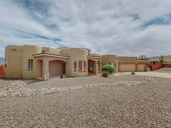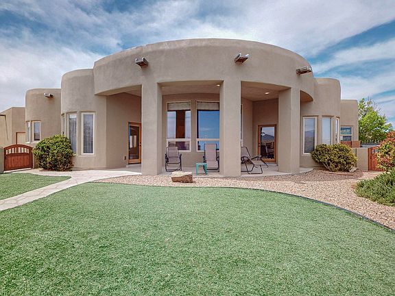 DON'T MISS THIS LOADED CUSTOM home!! This Spectacular home has a rotunda entrance and outstanding views of the Sandias. Featuring a 1/2 acre lot, LARGE GREAT ROOM with TONGUE AND GROOVE CEILINGS, CHEIOF'S INSPIRED GOURMET KITCHEN with a SPACIOUS MASTER SUITE and featuring a fireplace and walk-in closet, not to mention a jetted tub and snail shaped shower OVERSIZED 3 CAR GARAGE!! Easy care landscaping with artificial turf in the backyard with , and kiva fireplace. Backyard side access for and RV etc.