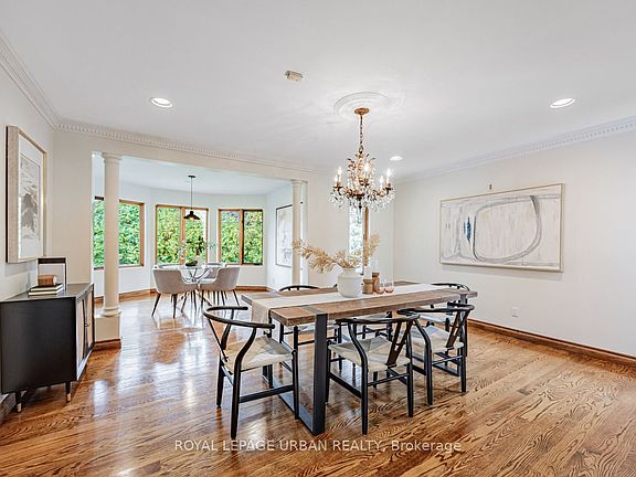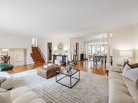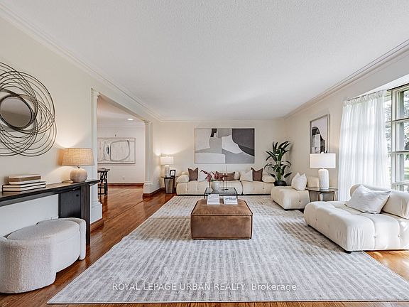 Bright, Spacious, And Oh So Gracious. Discover This Distinctive, Architecturally Expanded Family Residence Offering Nearly 3,900 Sq Ft Of Refined Living Space On A Generous Lot In Victoria Village. Thoughtfully Extended And Lovingly Maintained By The Same Family For Over 50 Years, This Home Blends Modern Livability With Enduring Design. A Double Door Entry Opens To A Sunlit Foyer And Welcomes You Into Expansive Principal Rooms. Natural Light Pours Through Skylights And Large Windows, Showcasing Dramatic Ceiling Heights, Crown Mouldings, And Rich Oak Hardwood Floors. The Living And Dining Rooms Flow Effortlessly For Entertaining Or Family Gatherings. The Bright, Functional Kitchen Features Built In Appliances, A Large Pantry, And A Breakfast Nook Overlooking The Lush Backyard, Ready To Enjoy Now Or Refresh In Your Own Style.The Main Floor Family Room, Anchored By A Gas Fireplace, Opens To The Patio And Garden For Seamless Indoor Outdoor Living. Upstairs, The Primary Suite Offers A Five Piece Ensuite With Jacuzzi Tub, Double Sinks, His And Hers Closets, And A Juliette Balcony. Three Additional Bedrooms Share A Renovated Four Piece Bath With Skylight. The Fully Finished Lower Level Extends The Living Space With A Bright Recreation Room, Private Office With Three Piece Ensuite, And Abundant Cedar Lined Storage. Multiple Entrances To The Home Provide Flexibility, Including Side And Garage Access. Cherished By One Family Since 1972, This Home Reflects True Pride Of Ownership And Craftsmanship Throughout. Updated Bathrooms, LED Pot Lights, Central Air, Central Vacuum, Security System, Cameras, And Ring Doorbell Offer Modern Comforts. Built In Garage With Shelving And Private Interlocked Driveway With Parking For Up To Seven Cars. Steps To Parks, Schools, Shopping, And The Upcoming Eglinton LRT. A Home Of Substance, Heart, And Promise, Ready For Its Next Chapter.