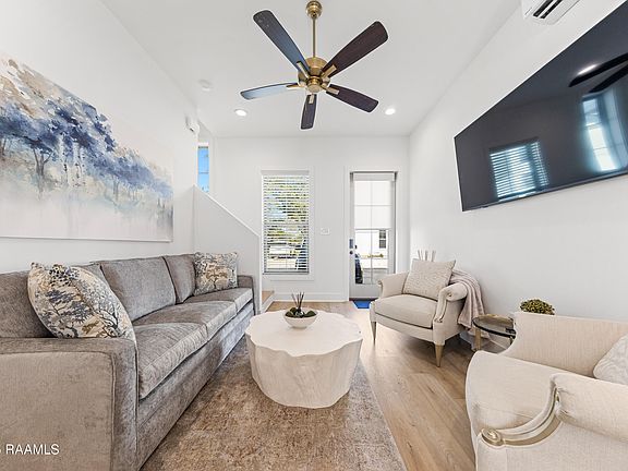 Welcome to brand-new living next to River Ranch. This fully furnished townhouse gives you comfort, convenience, and style in one of Lafayette's most sought-after neighborhoods, with easy access to shops, dining, and anything you may need. Step inside to luxury and stylish furnishings throughout( From Louisiana Furniture Gallery), smart TVs already in place, and a fully equipped kitchen ready for cooking and entertaining. The stunning kitchen features quartz countertops, stainless steel appliances, a 36-inch gas range for the chef at heart, plus a refrigerator and stackable washer and dryer already included. Designer colors and fixtures elevate every room with a fresh, modern feel. This home offers two spacious bedrooms with king size beds and each with its own bath along with darkening blinds. A convenient half bath downstairs. Pull out queen coach in the living room. Enjoy stress-free living with lawn care taken care of. Just choose your unit, move right in, and start enjoying this lifestyle.Utilities and WiFi included. 3 month, 6 month and 1 year lease available. See inventory list in Docs.